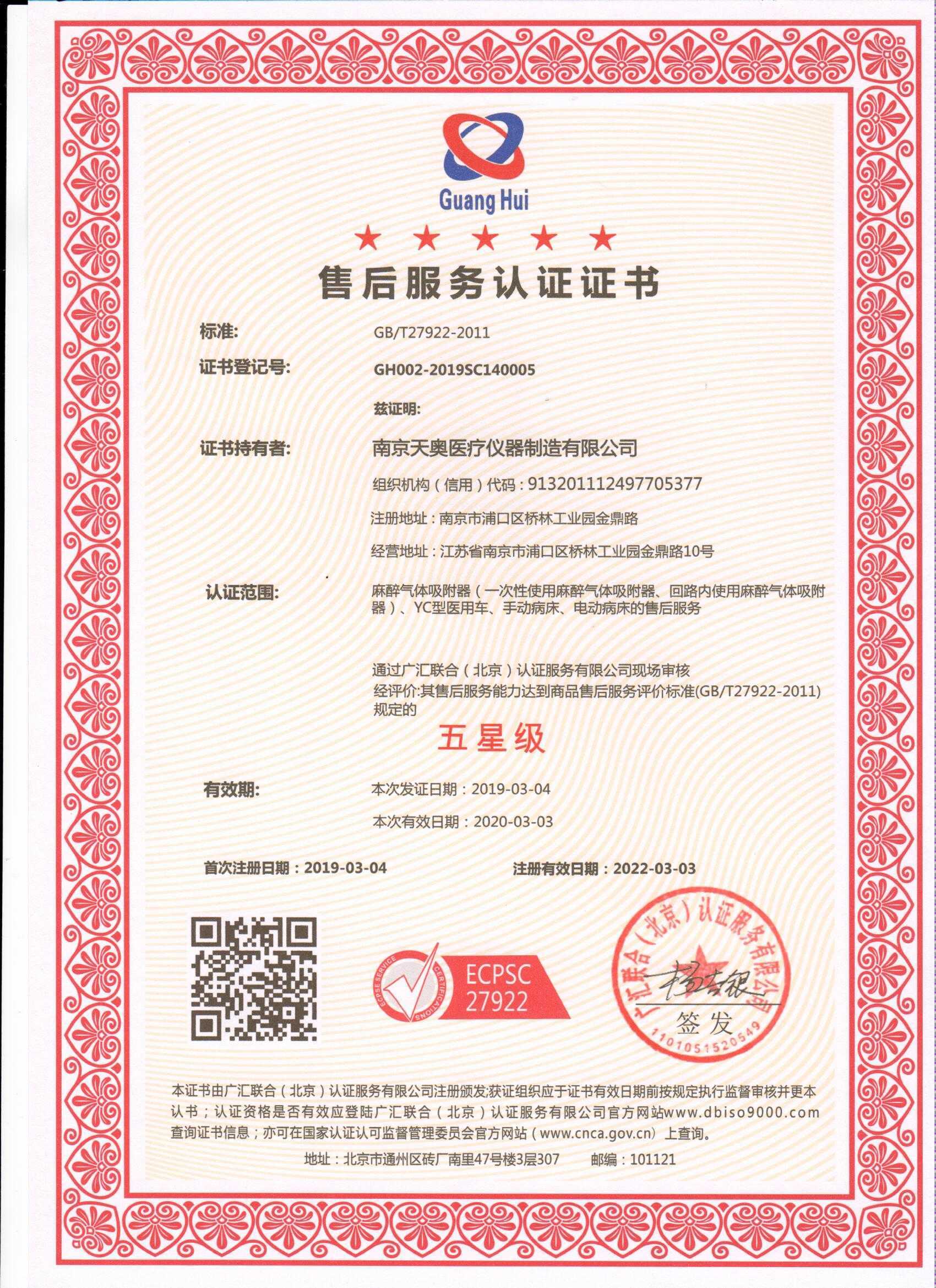 經過嚴苛而細致的現(xiàn)場評審,天奧售后服務能力達到國家標準GB/T27922-2011《商品售后服務評價體系》